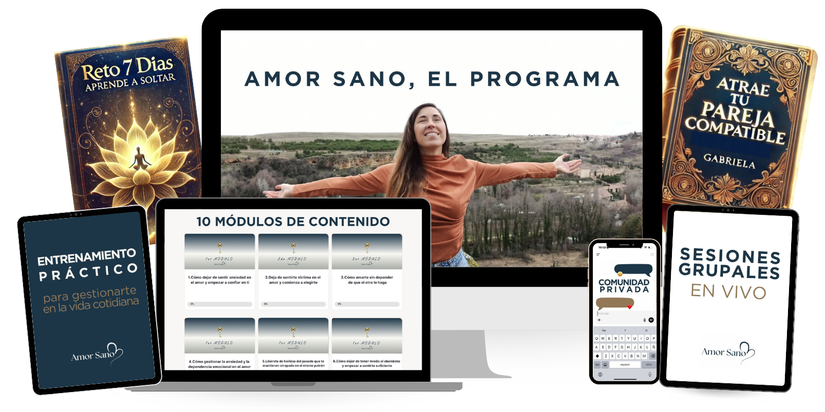 AmorSano no es solo un programa, es la guía para aprender a amarte, sentirte segura y construir relaciones auténticas sin miedo ni ansiedad.